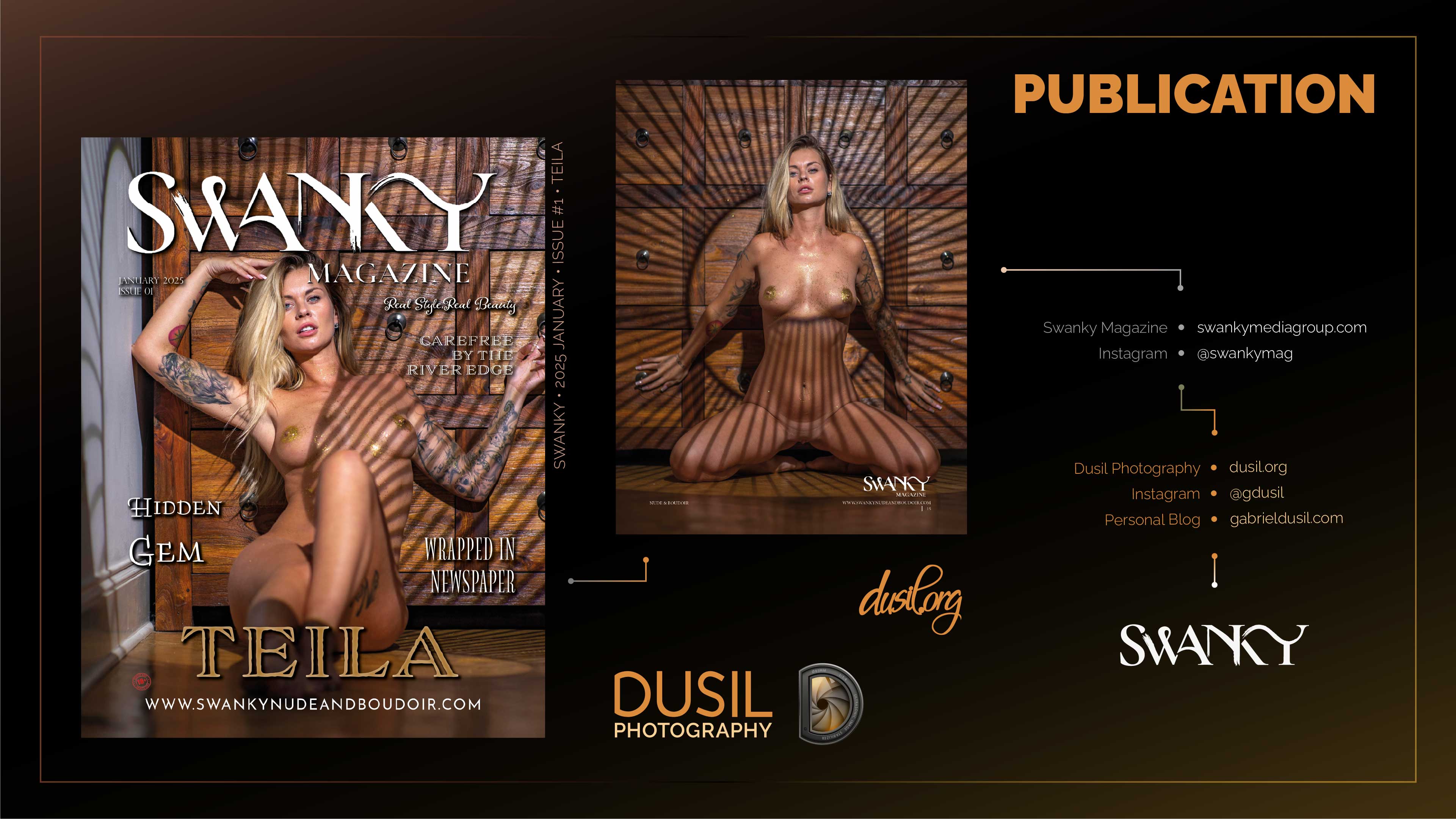 Swanky Magazine featured images from my photoshoot with Czech model, Teila (i.e., Cover #46). 💖 Our session was held at my studio in Prague, Czechia. Prints or digital copies can be purchased via the link below: