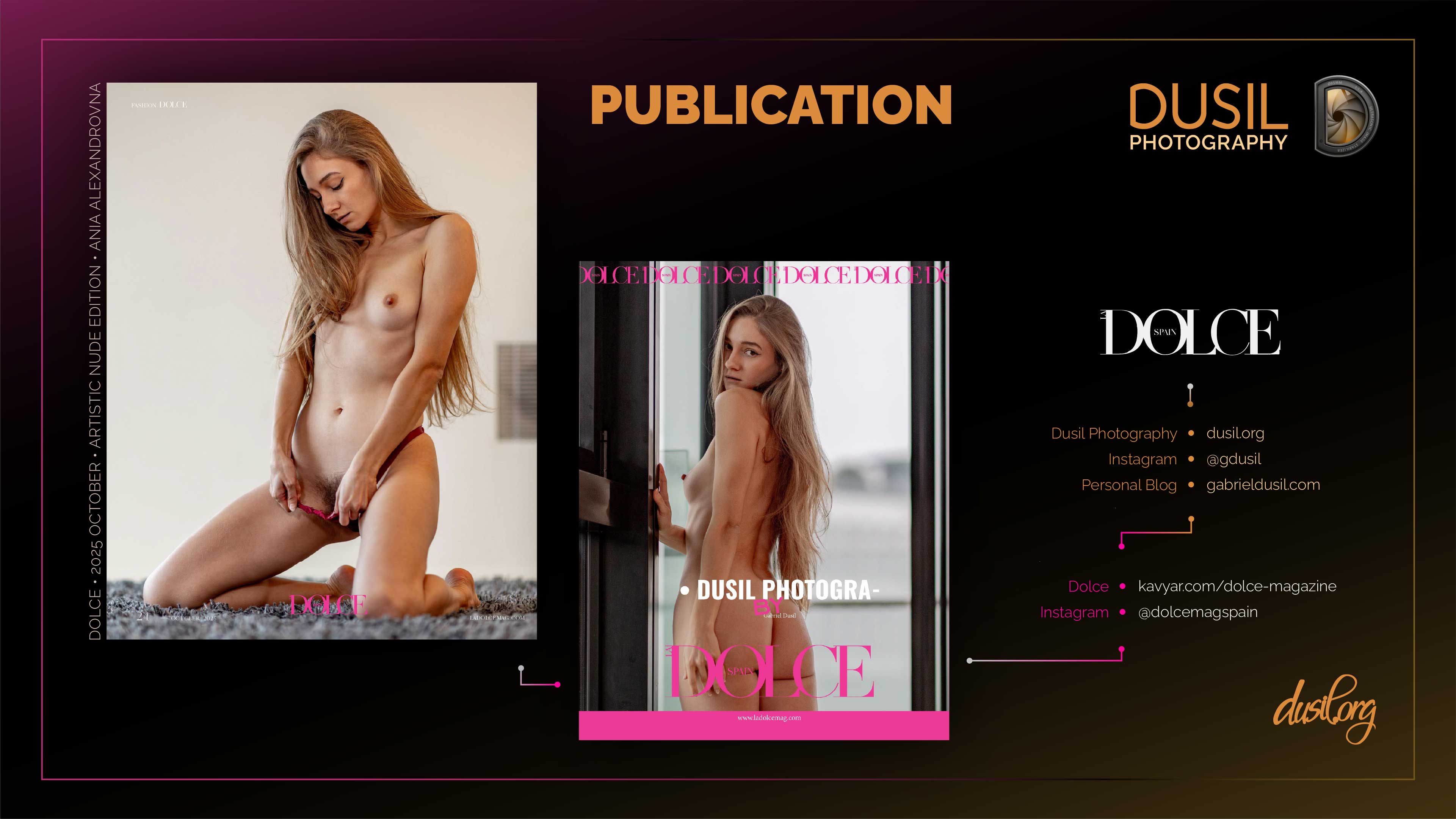 #GabrielDusil #DusilPhotography #DolceMagazine #AniaAlexandrovna #WarsawPhotographer #PolandModels #LuxuryPhotoshoot #ArtNude #ArtisticNudes #BoudoirArt #FineArtPortrait #MagazineFeature #EditorialShoot #BackCoverMagazine #PublishedPhotographer #CreativePortraiture #FashionArtPhotography #MagazinePublication #VisualArtistry #ArtisticPortraiture