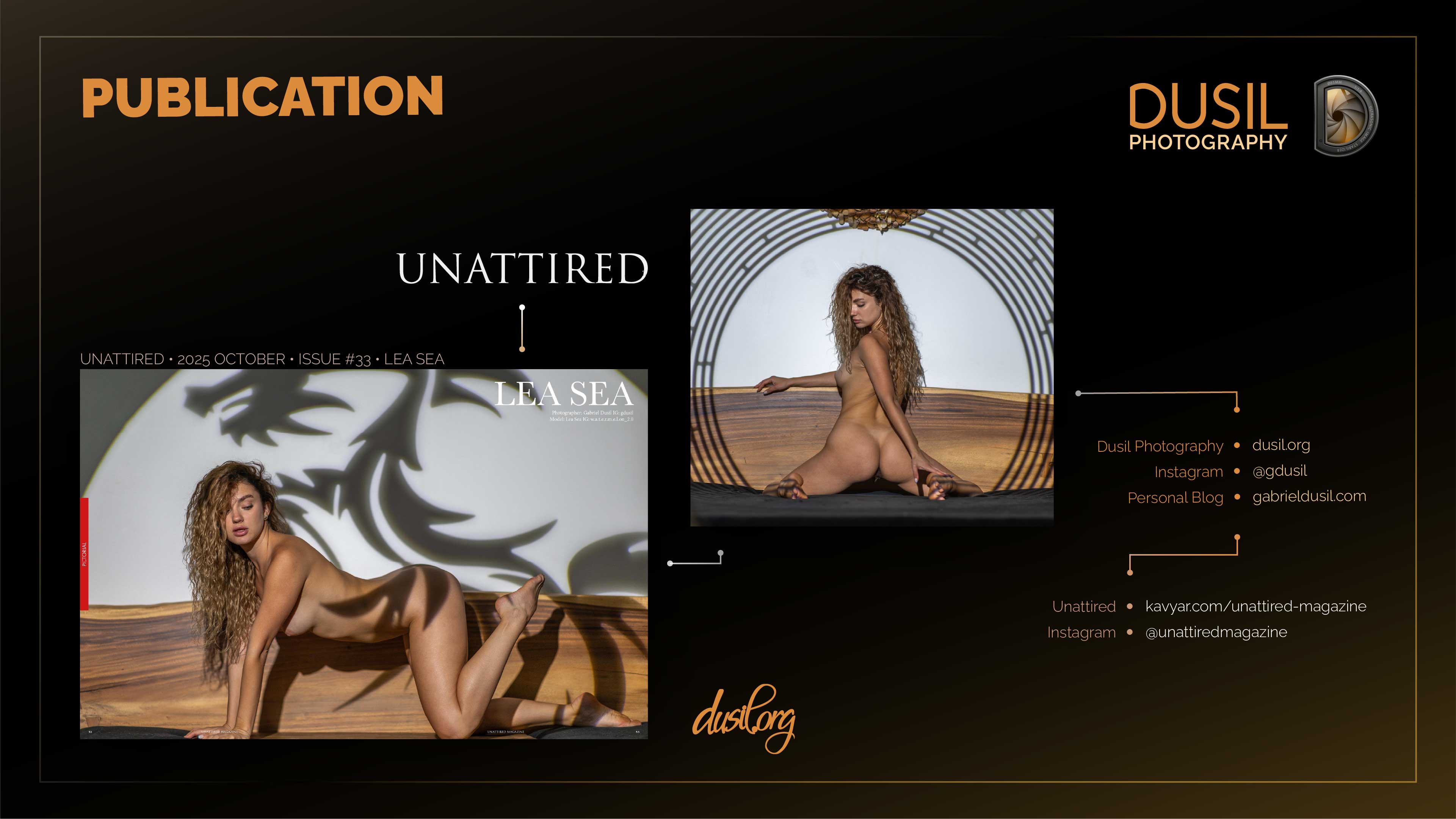 #UnattiredMagazine #LeaSea #PraguePhotographer #CzechiaModel #EditorialShoot #StudioPhotography #DusilPhotography #GabrielDusil #ArtNude #BoudoirInspiration #NudeArtPhotography #FineArtPhotography #CreativeEditorial #PragueStudio #ArtisticNudes #ModelSpotlight #MagazineFeature #PhotoArtistry #StudioPortraiture #FashionEditorial